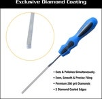 Artikelnummer 1451830Det perfekta verktyget när du behöver ta bort vassa bandändar eller grader. Filen i rostfritt stål har en diamantbeläggning grovlek 280
