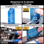 Felsök och kontrollera banden med Fret Rocker och Fret Gauge, åtgärda eventuella brister på enskilda band med de tre U-filarna. Behöver banden krönas så är även en kröningsfil inkluderad som är designad så att man inte överfilar. Är bandändarna vassa så fixar man det enkelt med Fret End Dressing-filen och Fret Beveling-filen som utformad så den har de perfekta vinklarna, 3 och 23 grader. För den sista touchen på banden så används MusicNomads Tracers Polishing-filar som ger den ultimata ytan och lystern till banden.