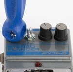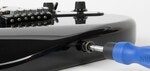 Den vändbara skruvmejseln har en spets för spårskruv i ena ändan och för stjärnskruv i andra. Med andra ändan på verktyget kan man skruva muttrar i fem olika storlekar. Det är 10mm, 12mm, 14mm, 1/2" och 7/16" vilket är dom vanligaste storlekarna på muttrar som sitter på gitarrer, basar och förstärkare. Ändan där man sätter i skruvmejeln finns även 1/2" mutterdragare som passar i gitarrer där man har telejacket något försänkt i gitarren. Handtaget är tillverkat i ett mycket slitstarkt nylonmaterial som inte repar ditt instument vid användning.