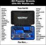 Verktygssats i lätt och robust aluminiumetui innehållande truss rod-nycklar och insex-nycklar i flera olika storlekar samt skruvmejslar.