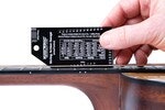 Med den smarta utformningen så har man sidor med fyra olika längder för att kunna lägga på halsen och kontrollera så inte bandstavarna har ojämn höjd. Du kan även kontrollera stränghöjden samt mellanrum mellan sträng och mikrofon.