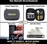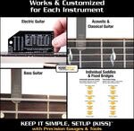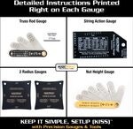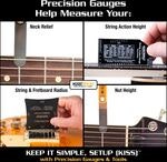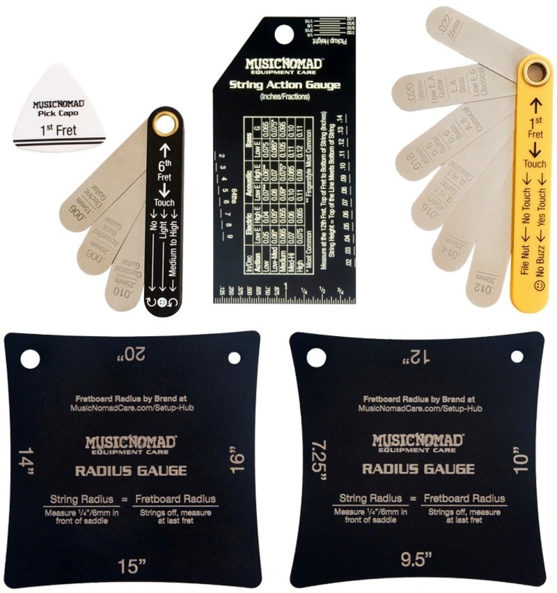 Flera olika mätverktyg för att bland annat mäta stränghöjden, pickup-höjden, radie och sadelhöjd.