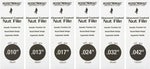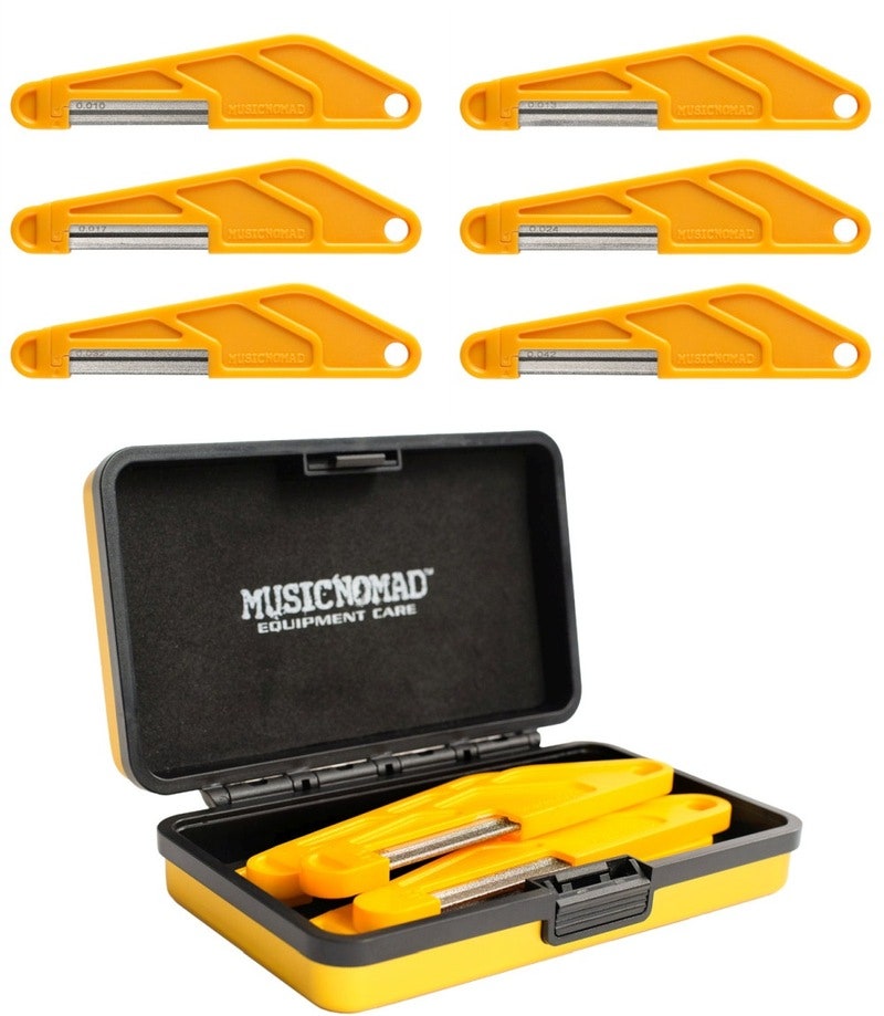 MusicNomad's Diamond Coated Nut File fungerar lika bra på sadlar i ben, grafit, plast eller TUSQ som i metall. Den unika utformningen gör att filbladet inte böjer sig vid användning vilket ger ett exakt och perfekt resultat. Beläggningen både filar och polerar på samma gång så ingen efterputsning behövs för att få en perfekt yta för strängen att vila mot. För att du tydligt ska ha koll på dina filar är storleken lasergraverad på filbladet och det ergonomiska handtaget i plast har ett hål för upphängning så du kan ha tydlig ordning och reda på dina verktyg. Med en längd på 120mm är den lagom stor för att vara lättgreppad men ändå smidig nog för att inte ta för stor plats på din arbetsbänk.
