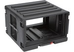 6U Roto Rolling Rack incorporating an innovative design that includes a one-touch pull handle and back lid mounted wheels for easy transport.