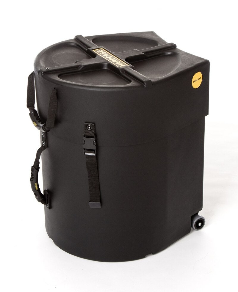 HN13-14C har 2st greppvänliga handtag på toppen av caset för att du smidigt ska kunna bära den med dig. Caset stängs enkelt med justerbara clipspännen som sitter på remmar så du kan anpassa längden beroende på djupet på din trumma. I bakre kant har caset 2st gummihjul så du kan dra den efter dej som en vagn.