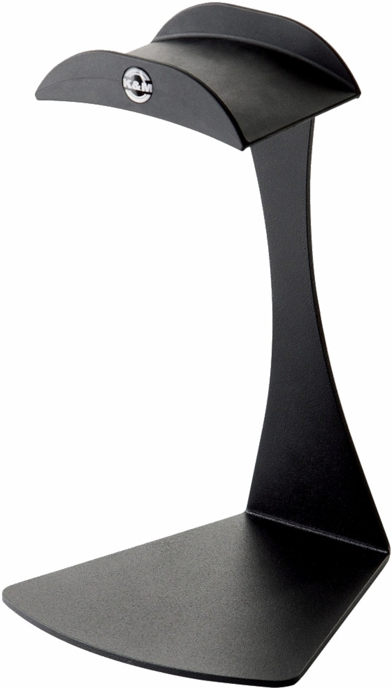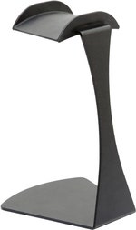 Bordsställ för hörlurar, svart, robust, tillverkat i metall.