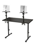 Large folding event table for the professional DJ and many other uses. The 1,170 long and 600 mm wide tabletop offers plenty of space for all kinds of equipment and accessories. With a thickness of 25 mm, the MDF top can bear a load of up to 30 kg. The perfect working height is adjusted in 15 mm steps between 625 and 1,045 mm. For transport or space-saving storage, the two feet are folded in without further ado. The sturdy tubular steel construction and the large round levelling end caps give the practical table a very high level of stability and a secure stand.