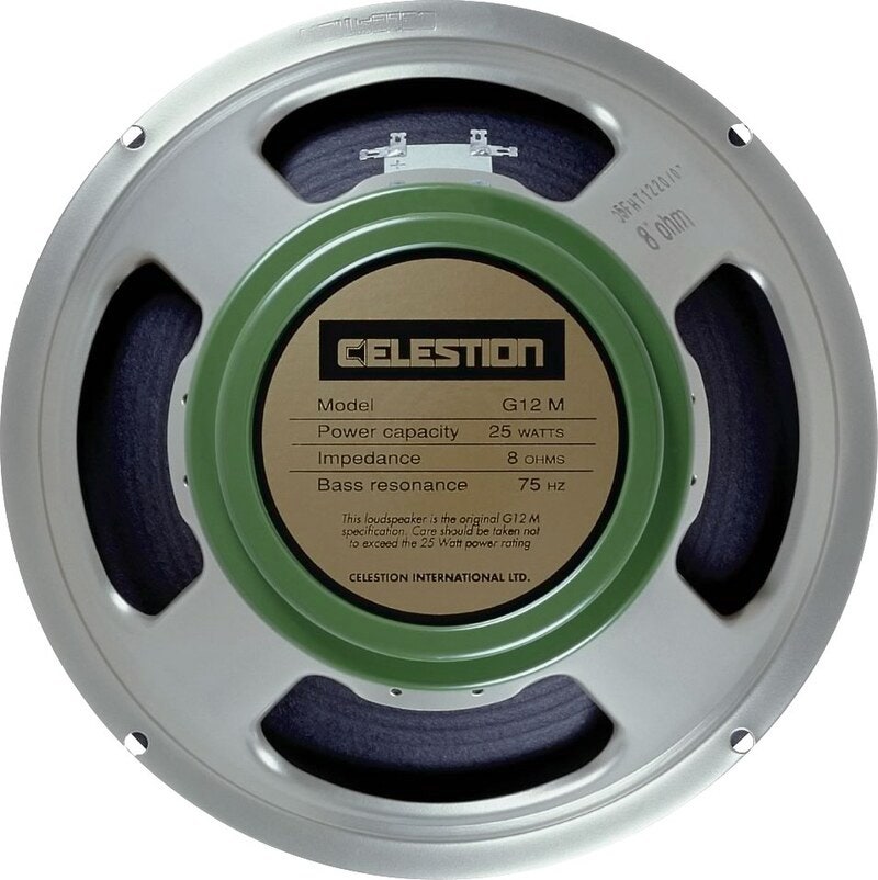 Klassikern G12M Greenback har varsamt utvecklats under årtionden; förbättringar har gjorts men den eftertraktade tonen är bibehållen utan kompromisser. Denna version uppvisar alla de egenskaper som är klassiska för G12M men attacken är bredare i mellanregistret och de högre frekvenserna är bättre kontrollerade. Dessa högtalare är perfekta för att ge klassiskt driv och definition till moderna "high gain"-stärkare.
