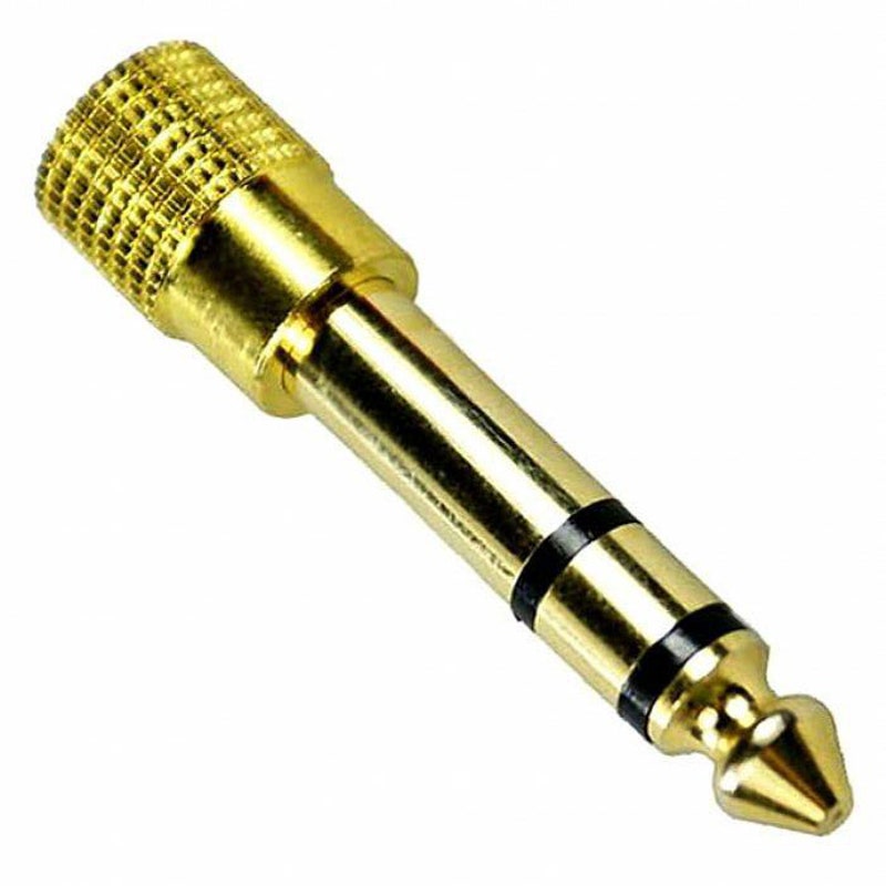 Guldpläterad hörlurs-adapter, stereo 3,5mm till 6,35mm tele.