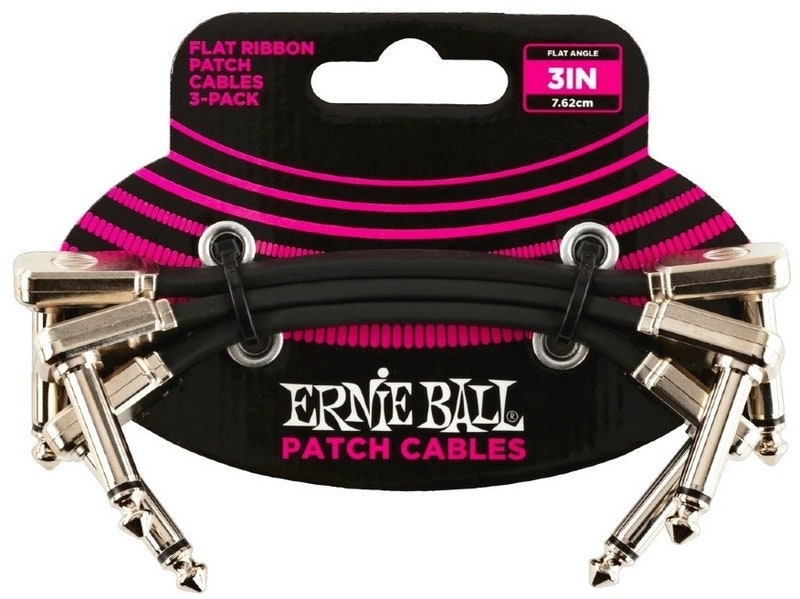 3-pack 7,5cm Ernie Ball Flat Patch Cable - Svart platt kabel med platta kontakter