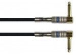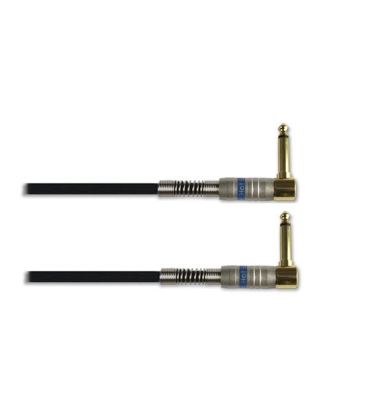 Svart patch kabel med kontakt och belastningsskydd i metall. Vinklade kontakter.