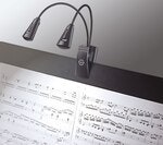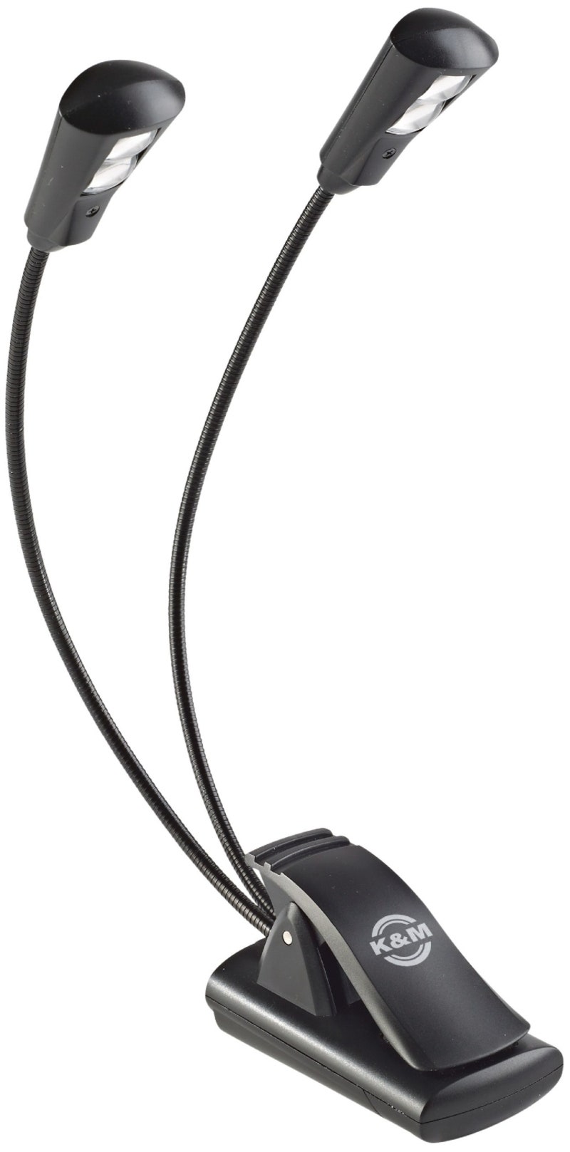 König & Meyer Music stand light "Double2 LED FlexLight" är en batteridriven LED-belysning som drivs med batterier eller nätadapter (ingår ej). Du kan klämma fast den på material med en tjocklek på upp till 25mm eller ställa den på en bordsskiva om du vill ha den fristående. Passar bra till notställ eller på ett instrument men lika bra att fästa på en bok när du vill läsa i mörkret.