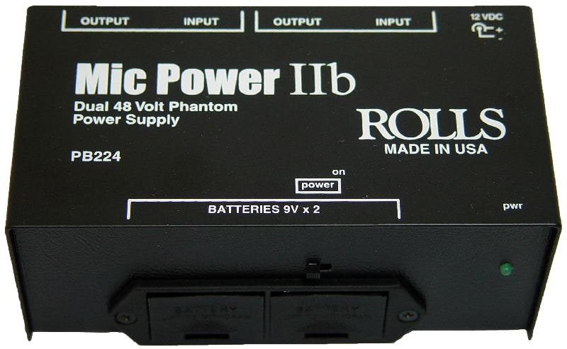 Två kanals phantommatning för kondensatormikrofoner med möjlighet för batterdrift. 48V