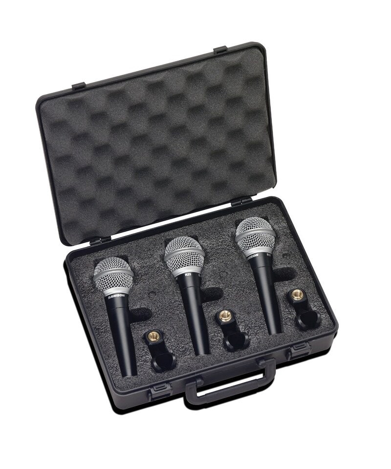 Dynamisk sång- och inspelningsmikrofon med on/off-omkopplare, njurkaraktäristik. 3-pack, komplett med mikrofonhållare och väska.