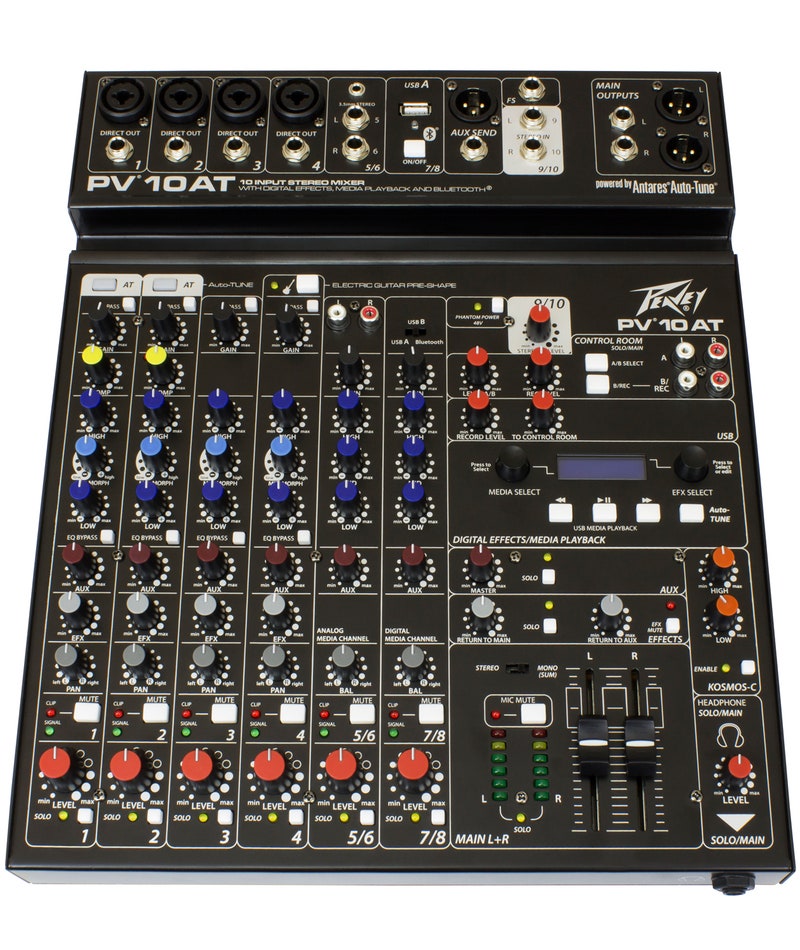 The PV® 10 AT mixers come equipped with Antares® Auto-Tune® pitch correction, a technology that can literally help anyone sing in key and is used on professional recordings and live performances throughout the world. This technology is incorporated directly into a complete and powerful portable mixing solution, ensuring that your audience will experience perfectly tuned vocals to complement the crystal-clear audio of the mixer.