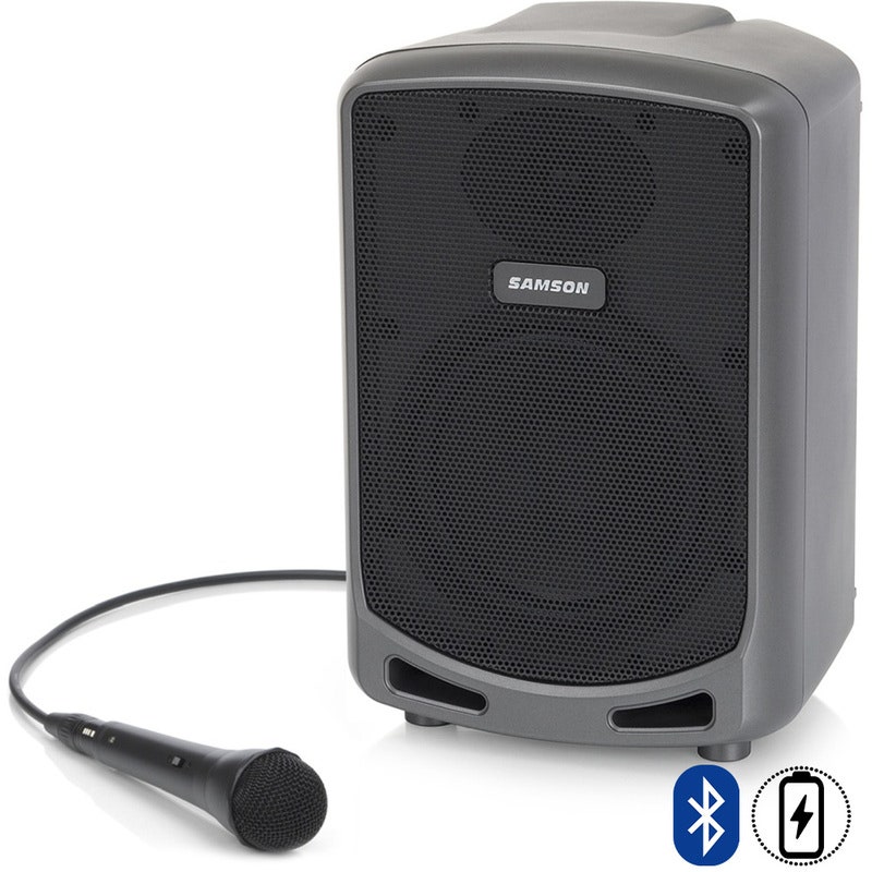 This lightweight, rechargeable speaker system weighs just under 12 pounds and delivers rich, full sound through its 6" woofer and 1" tweeter. Wirelessly stream music from any Bluetooth device for up to 20 hours on a single charge. Plus, it comes with a wired handheld microphone and cable to add your voice to the mix. Built on Samson's legacy of designing large PA speakers for live music, the Expedition Express+ delivers rich, dynamic sound from its tuned, 2-way speaker enclosure and advanced 75-watt power amplifier.