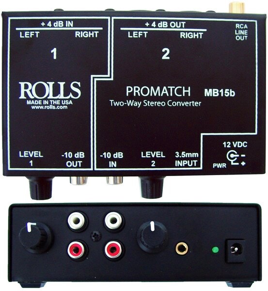 Stereo Direkt-box som konverterar obalanserade signaler till balanserade och vice versa. Kanal 1 har 2st balanserade XLR in och ett RCA-par ut, kanal 2 har RCA-par eller 3,5mm in och 2st balanserade XLR och ett RCA-par ut.