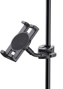 Hållare för surfplatta, rörfäste, passar på ett mikrofonstativ, justerbar höjd, svart.