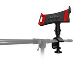 Artikelnummer 2902410Hållare för surfplatta, justerbar 160 - 230mm, klamp för rör upp till 30mm, vridbar 360°, svart & röd.