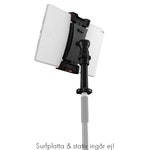 Direkt ovanpå ett mikstativ, på själva mikstativet eller andra stativ med en diameter upp till 30mm, på bommen på mikstativet eller på ett kamerastativ, det finns många möjligheter. Fodral eller inte, iPad mini eller Samsung Galaxy, det är inget problem. Det nya uppgraderade fästet kan hålla läsplattor från 7" til 13". (160 - 230mm).