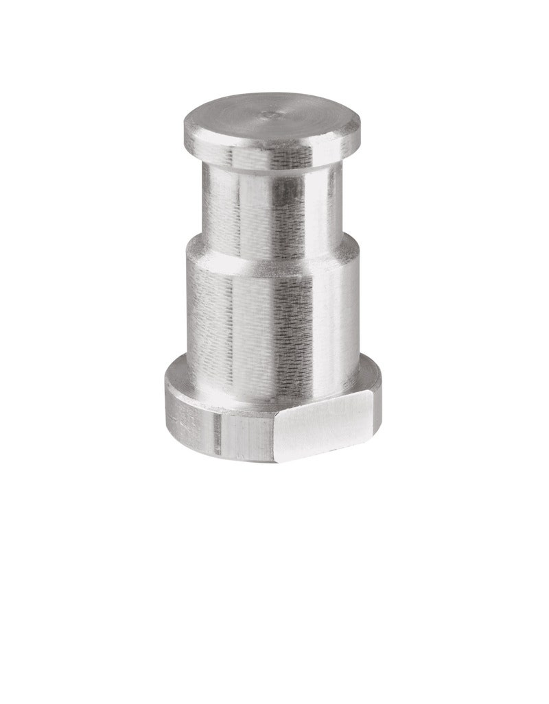 Useful ø 16 mm mini TV pin made of aluminum with 3/8" female thread which easily turns your microphone stand into a lighting stand.
