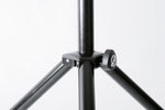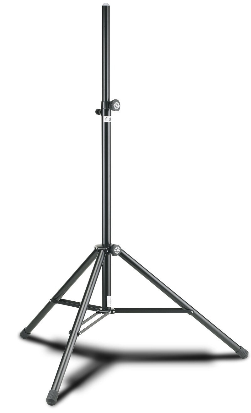 Svart högtalarstativ i aluminium med inbyggt fjädersystem som underlättar riggning utav högtalare.