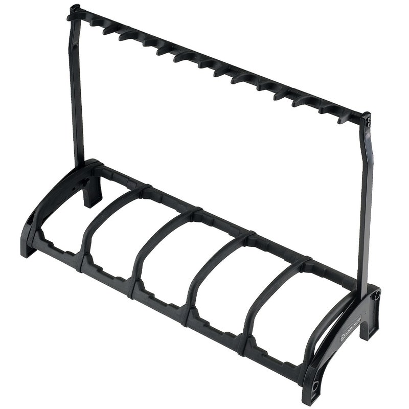 Gitarrställ för 5 instrument, rackmodell, hopfällbart, lätt vikt, stabilt, svart.