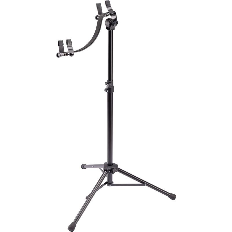 Det slittåliga stålröret med rörben och tvärstag ger mycket god stabilitet, samtidigt som den tvådelade hopfällbara konstruktionen gör stativet enkelt att transportera och förvara. Med en klämvidd på 75–135 mm passar stativet de flesta akustiska gitarrer. Den steglöst justerbara lutningen ger ytterligare ergonomisk flexibilitet.