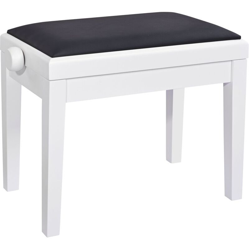 Artikelnummer 25513926WHöjdjusterbar pianobänk i massivt trä, vit matt finish med svart konstlädersits