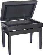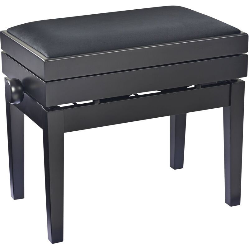Artikelnummer 25513955Höjdjusterbar pianobänk i massivt trä med förvaring, matt svart finish och svart veloursits