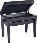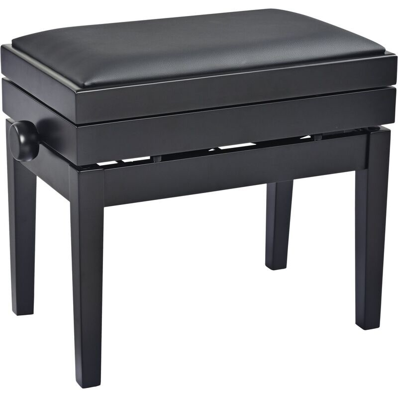 Artikelnummer 25513956Höjdjusterbar pianobänk i massivt trä med förvaring, matt svart finish och svart konstlädersits
