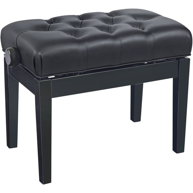 Artikelnummer 25513963Hydraulisk pianobänk med pneumatisk höjdjustering, svart högglansfinish och quiltad konstlädersits