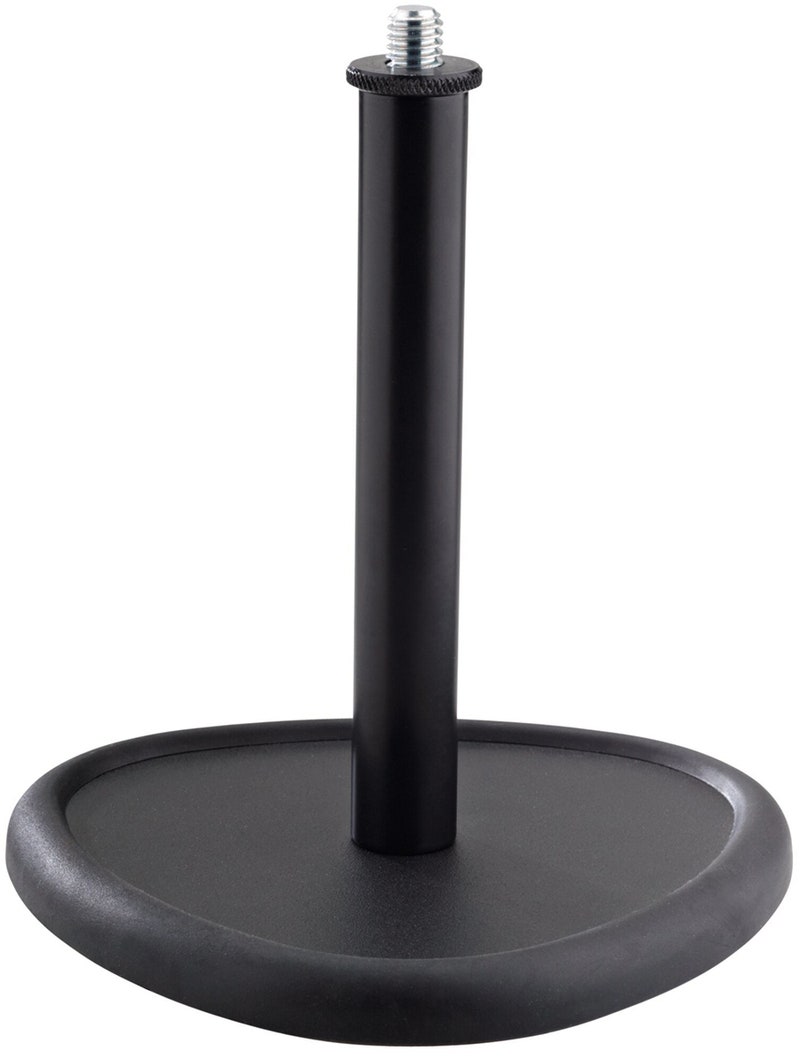 Artikelnummer 25523230Bordstativ för mikrofon, robust triangelformad fot, 3/8" gänga, svart.