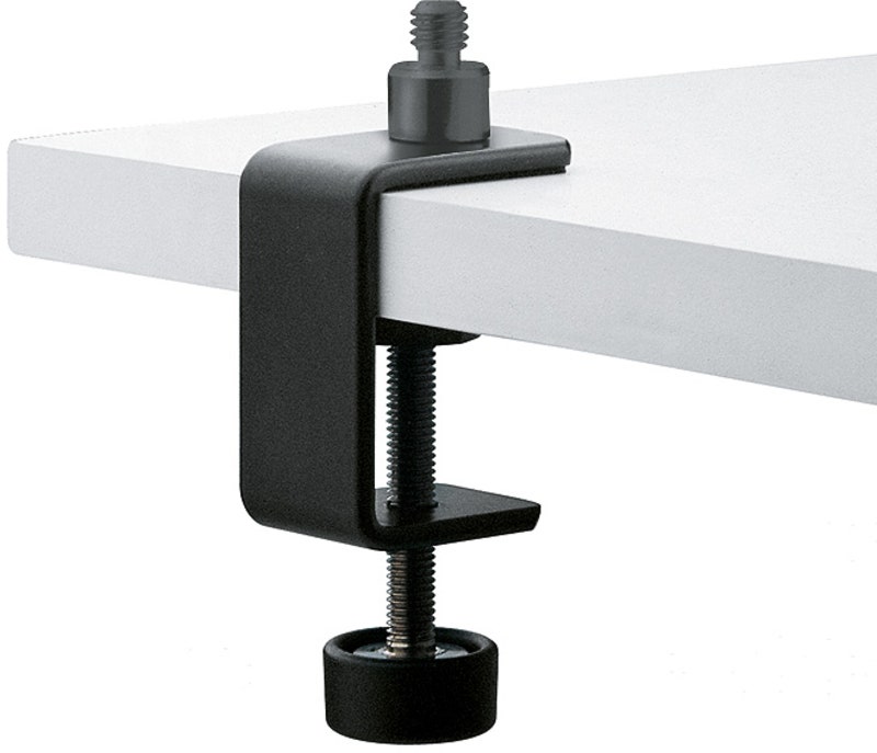 Klamp för att fästa för mikrofoner, svanhalsar och bommar med 3/8 gänga i en bordsskiva.