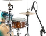Lågt mikrofonstativ med tre ben och teleskopbom för enklare placering av mikrofonerna på trumsetet.