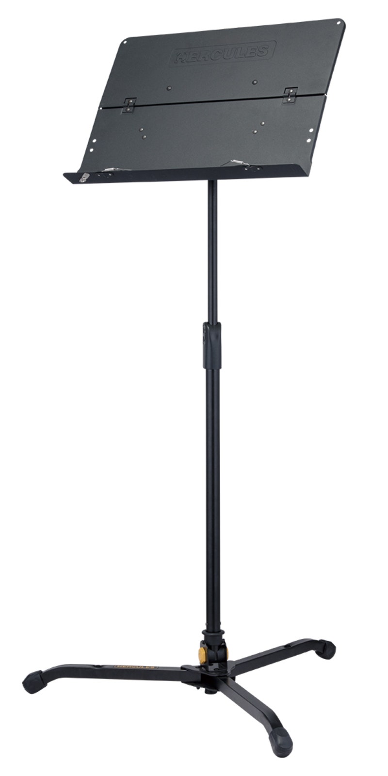 Mycket robust notställ av orkestermodell med stabil hopfällbar notplatta.