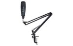 Artikelnummer 4850261USB mikrofon, kabel och studiostativ som fästes i bordskanten. Passar både för hemmabruk och i den professionella ljudstudion.